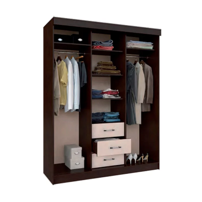 для хранения вещей в аккуратно сложенном виде. Одежда на плечиках располагается на двух штангах в левом и правом отделении.